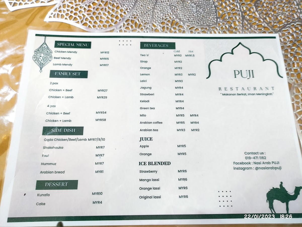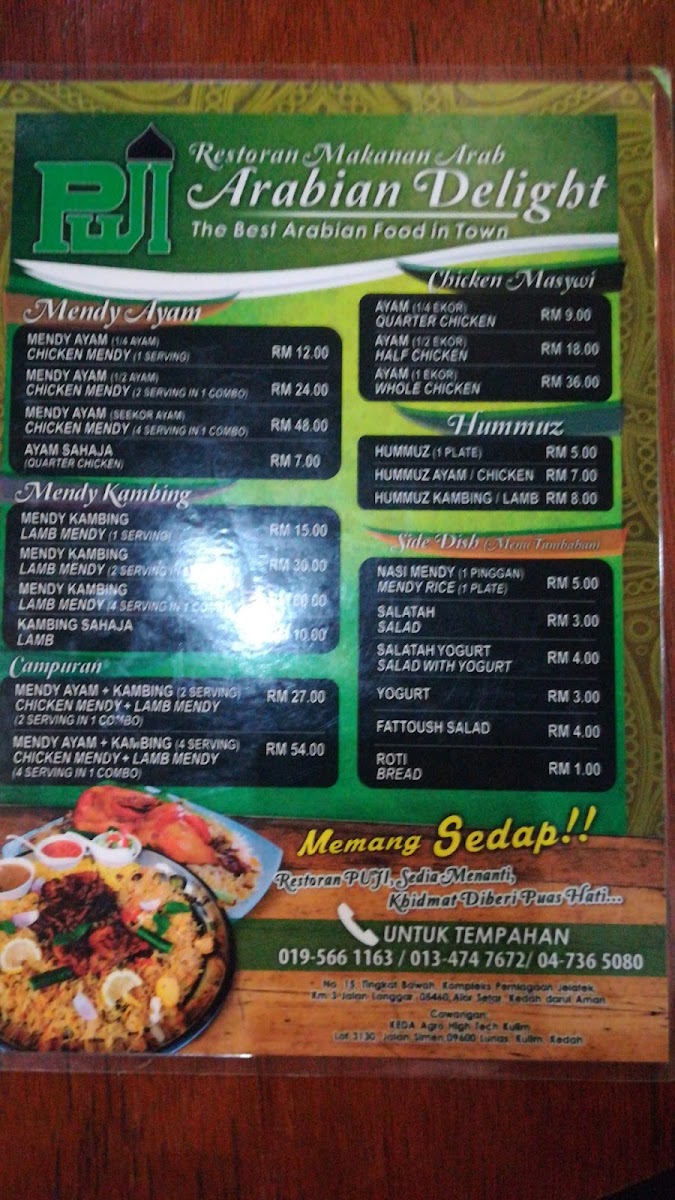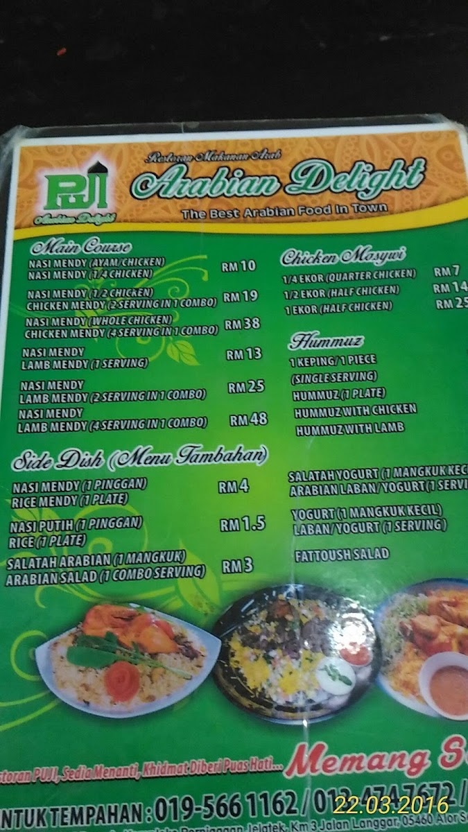 Welcome to Arabian Delight, a culinary haven located in Kampung Tok Bidan, Alor Setar, Kedah. This restaurant has quickly become a favorite among locals, and for good reason. The menu boasts a variety of sumptuous dishes that showcase the rich flavors of Arabic cuisine. Notably, their Nasi Mandy Kambing has garnered rave reviews for its tender lamb and aromatic spices, making it a must-try.